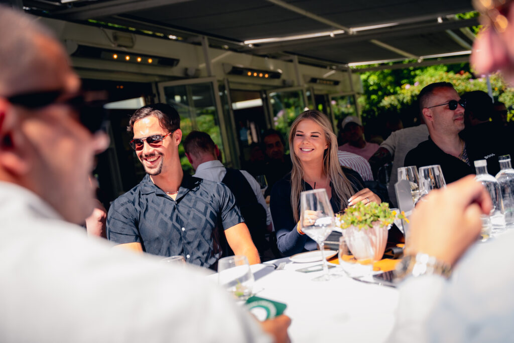 Op de eindlocatie kon de StreetGasm Family in het zonnetje op het terras genieten van het uitzicht op hun supercars. Bij restaurant de HFSLG genoten wij van een heerlijke en goed verzorgde. Daarbij werden verfrissende drankjes geserveerd, mede mogelijk gemaakt door onze Carbon Partner Poolder.