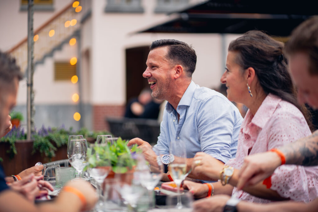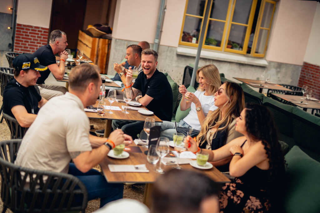 Aangekomen bij de eindlocatie, waar een aantal dikke auto’s als decoratie op het terras stonden te schitteren, werden de leden verwelkomd op het prachtige terras van een jachtslot. Hier kon iedereen genieten van een drankje, gezellig bijpraten over de geweldige dag en vooral smullen van het heerlijke driegangendiner dat werd uitgeserveerd. Kortom: een enorm geslaagde tweede editie van de SG Drive, met een fantastische groep nieuwe en vertrouwde gezichten.