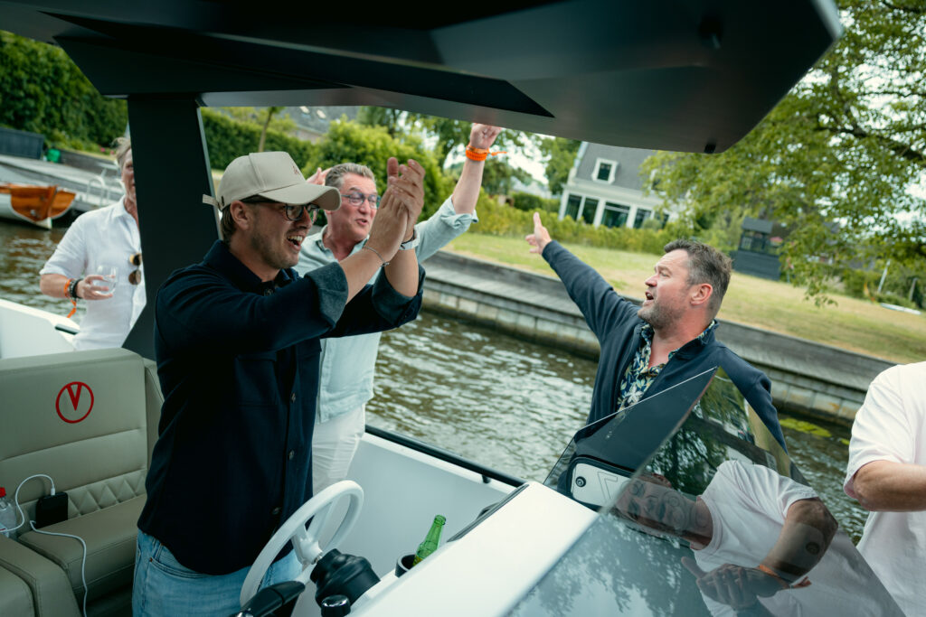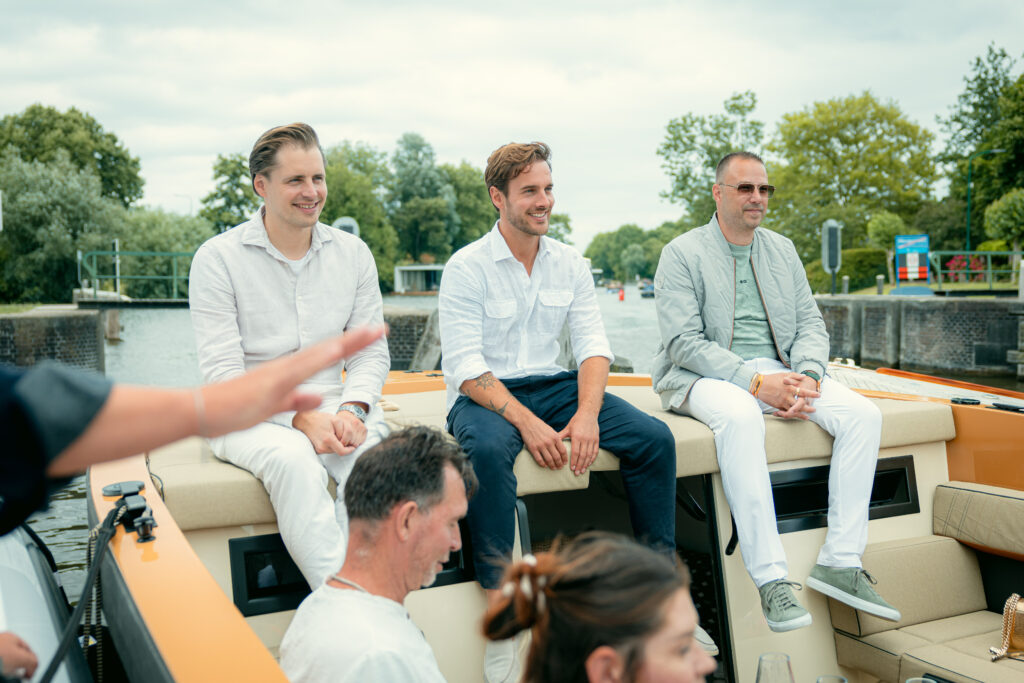Daarna was het tijd voor waar iedereen eigenlijk voor kwam: het water op! Met een ruime keuze aan schitterende jachten werd de groep verdeeld, en kon de pret écht beginnen.